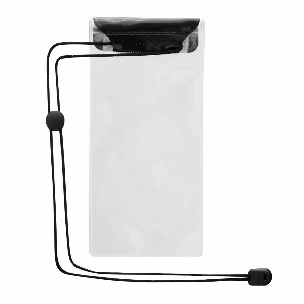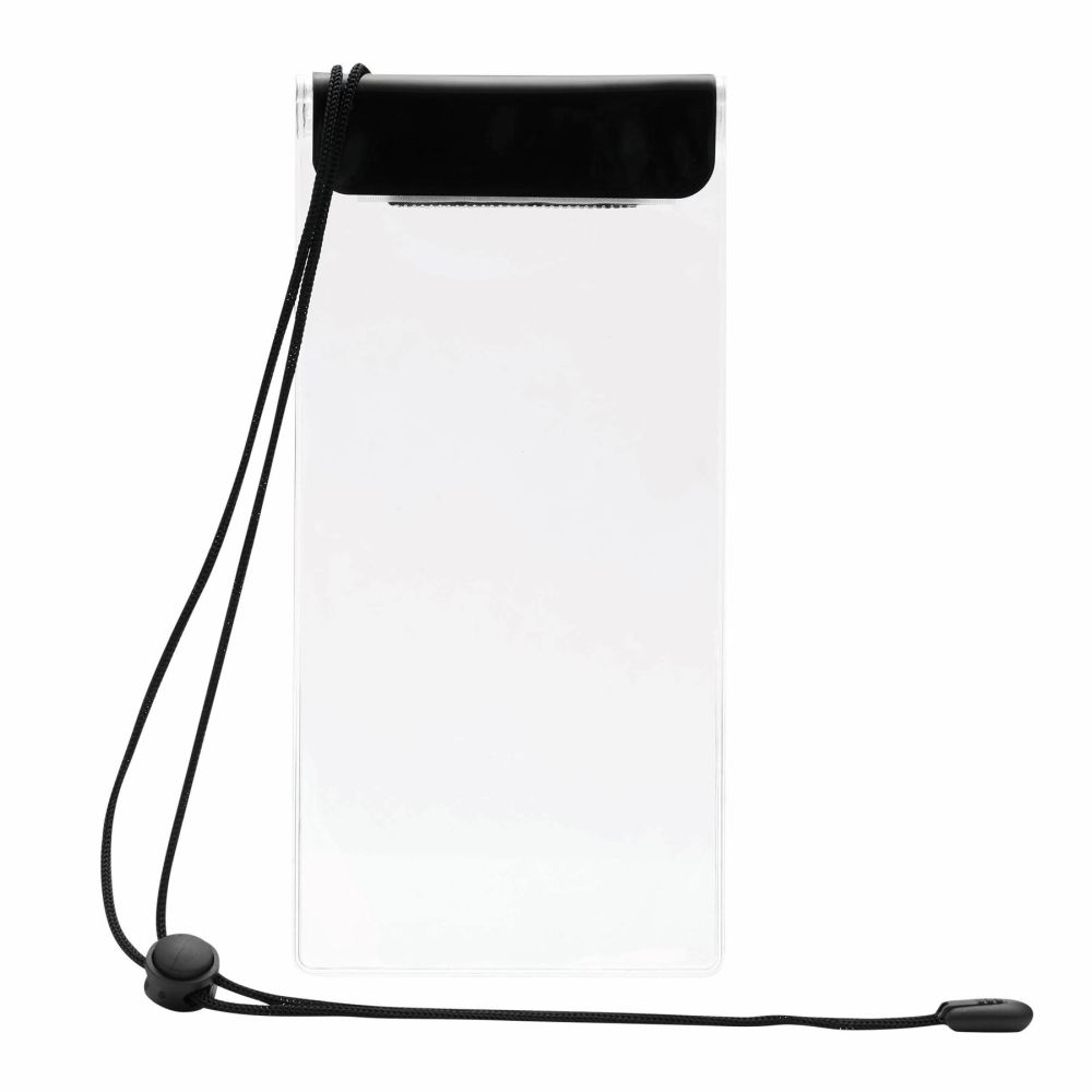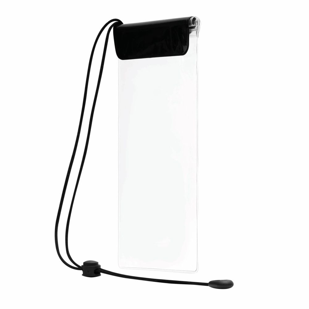 Průhledné voděodolné pouzdro na mobil, černá klopa a šňůrka