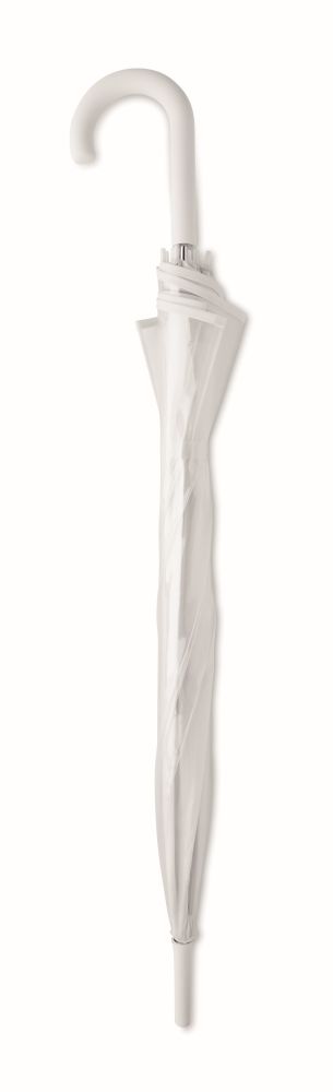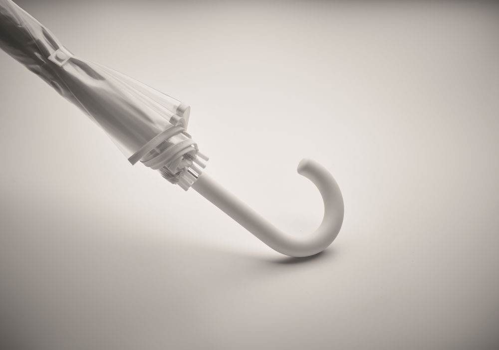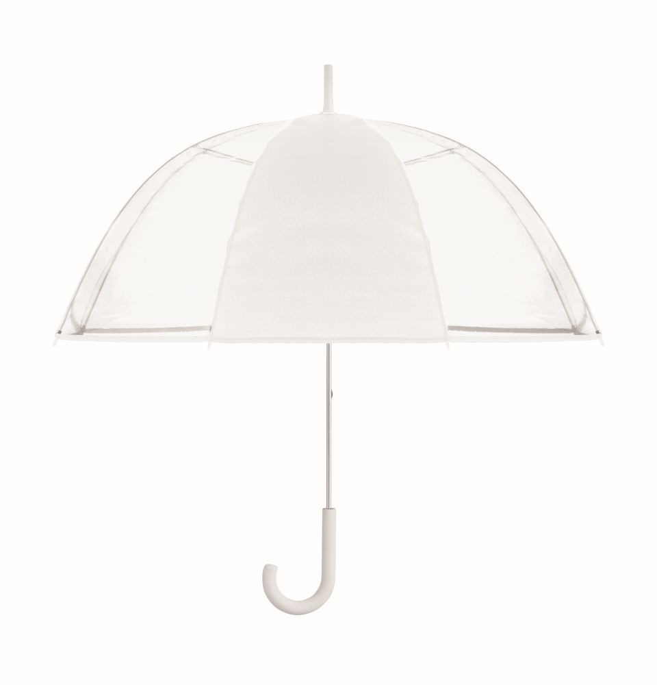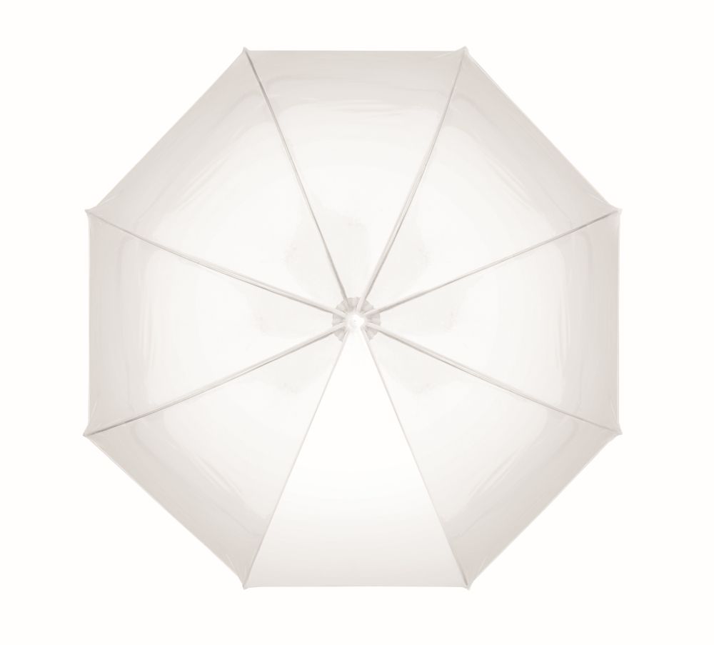 Průhledný manuální 23palcový deštník z POE s PG lemováním a 1 panelem z polyesteru vhodným pro potisk. Sklolaminátová žebra, chromovaná tyč s plastovými koncovkami. Rukojeť s gumovou povrchovou úpravou. Rozměry: O83x85cm