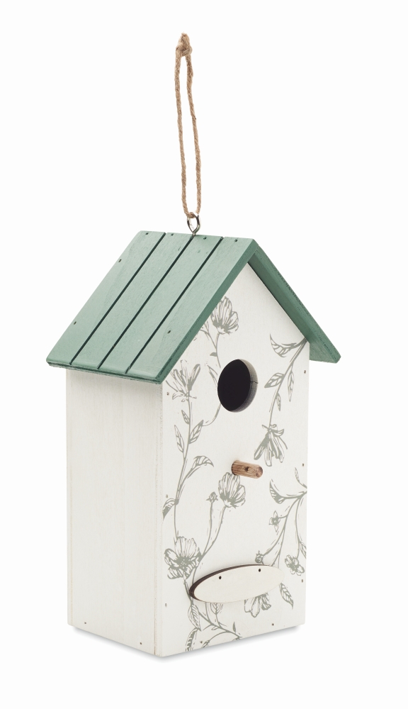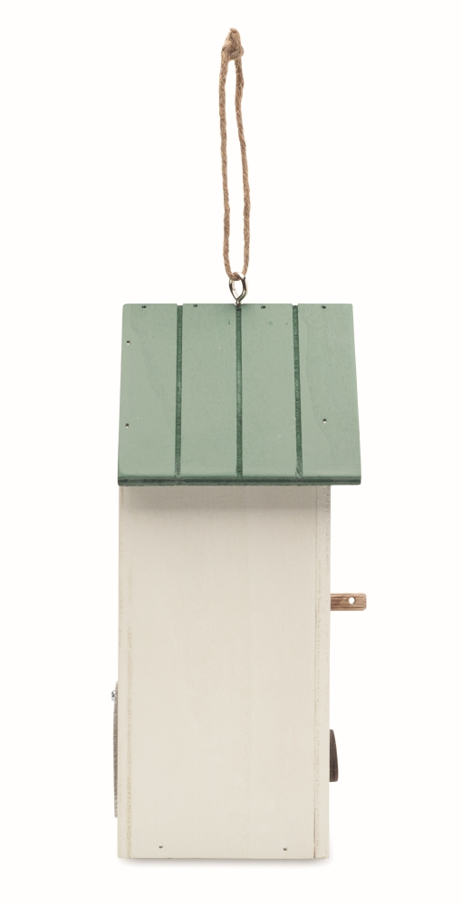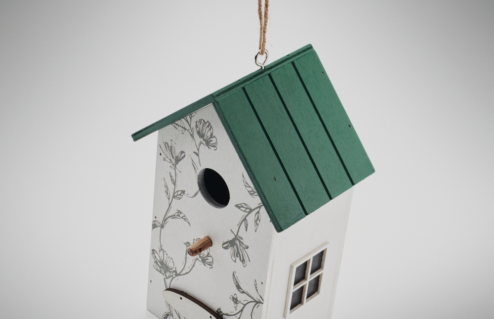 Ptačí budka z překližky. Rozměry: 11 x 23 x 10 cm. Materiál: MDF