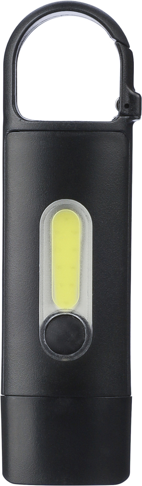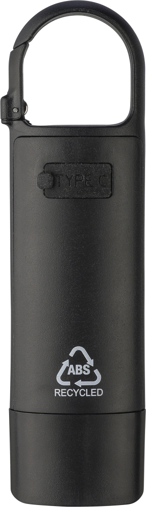 Mini svítilna z recyklovaného ABS plastu s vestavěnou 200 mAh dobíjecí baterií přes USB a karabinou. Obsahuje přední COB světlo a boční COB světlo se třemi režimy svícení. Součástí balení je nabíjecí kabel USB-C a logo z recyklovaného ABS plastu. Jednotlivě baleno v hnědé kartonové krabici. Rozměry: 11 x 3,3 x 1,5 cm