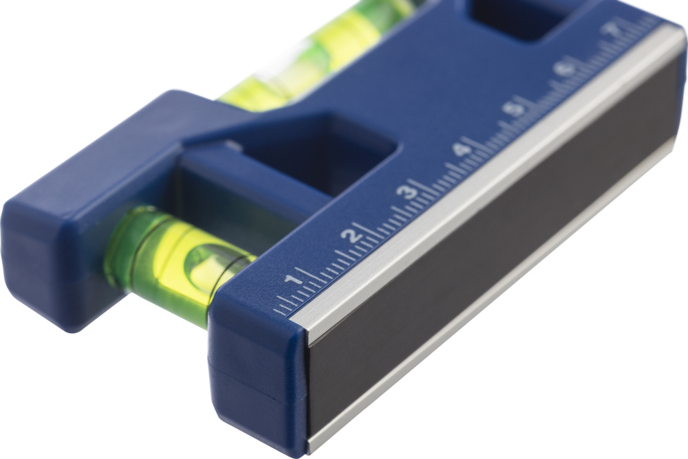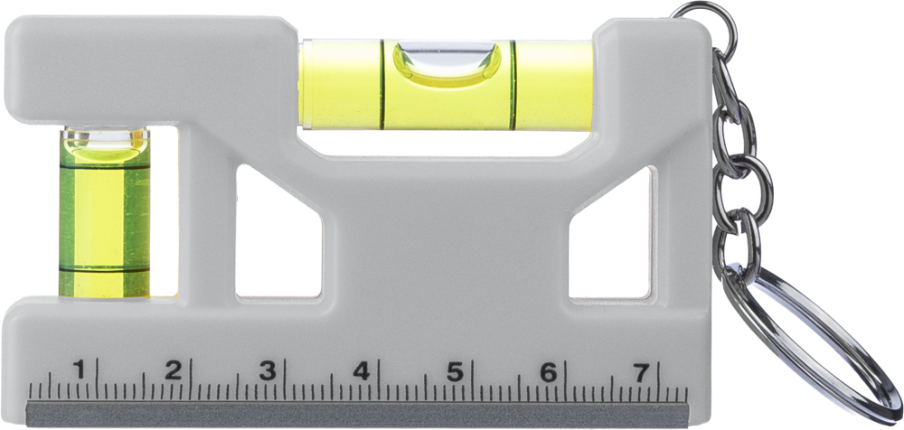 Přívěsek na klíče z magnetické vodováhy z recyklovaného ABS plastu s vyznačením velikosti na přední straně. S magnetickým proužkem na spodní straně pro připevnění na kovové povrchy. Součástí je kroužek na klíče a logo z recyklovaného ABS plastu na zadní straně. Jednotlivě baleno v hnědé kartonové krabici. Rozměry: 7,5 x 1,8 x 4,2 cm