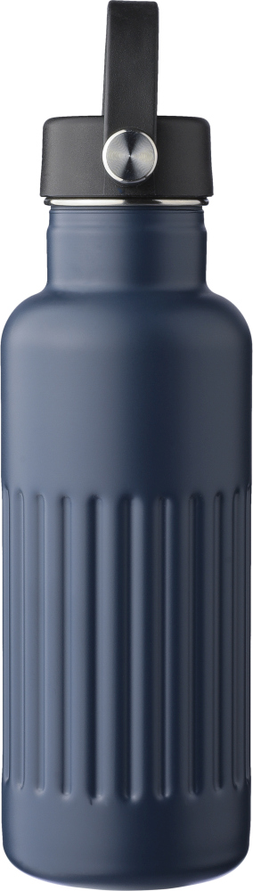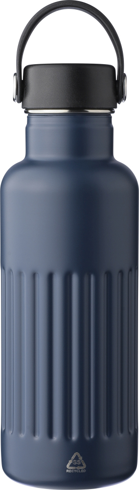 Láhev na pití z recyklované nerezové oceli (500 ml). Víko z PP a železa s rukojetí z TPE pro snadné přenášení. Na těle je vyryté recyklované logo. Jednotlivě baleno v hnědé kartonové krabici. Rozměry: 7,5 x 22,5 cm
