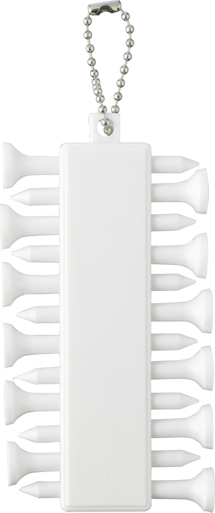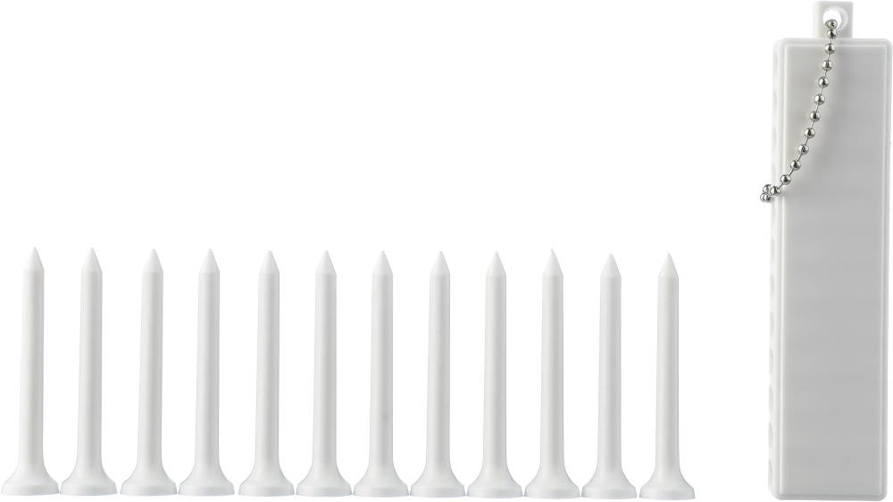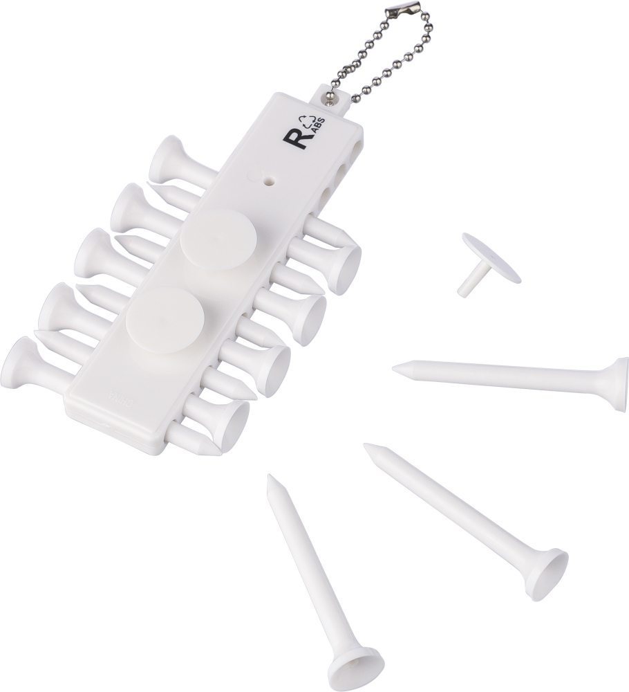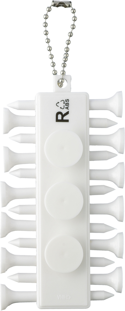 Recyklovaný ABS golfový set skládající se z 12 odpališť v kompaktním držáku se třemi značkami na zadní straně. Má kovový kabel pro snadné připevnění a na zadní straně má recyklované logo ABS. Rozměry: 10,5 x 1,5 x 5,5 cm