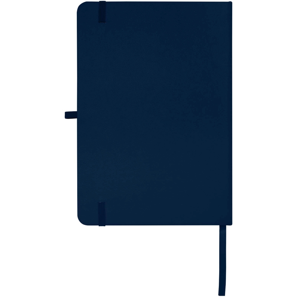 Zápisník A5 s pevnou obálkou z lepenky a zaoblenými rohy je nejen skvělým pomocníkem v kanceláři, ale také ideální příležitostí k propagaci vaší značky. Zápisník má 96 linkovaných listů papíru o gramáži 70 g/m2 a obálkou měkkou na dotek. Dodává se s poutkem na pero, elastickým uzávěrem a záložkou. Rozměry: 21,2 x 14,6 cm