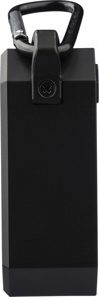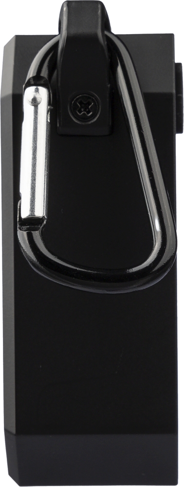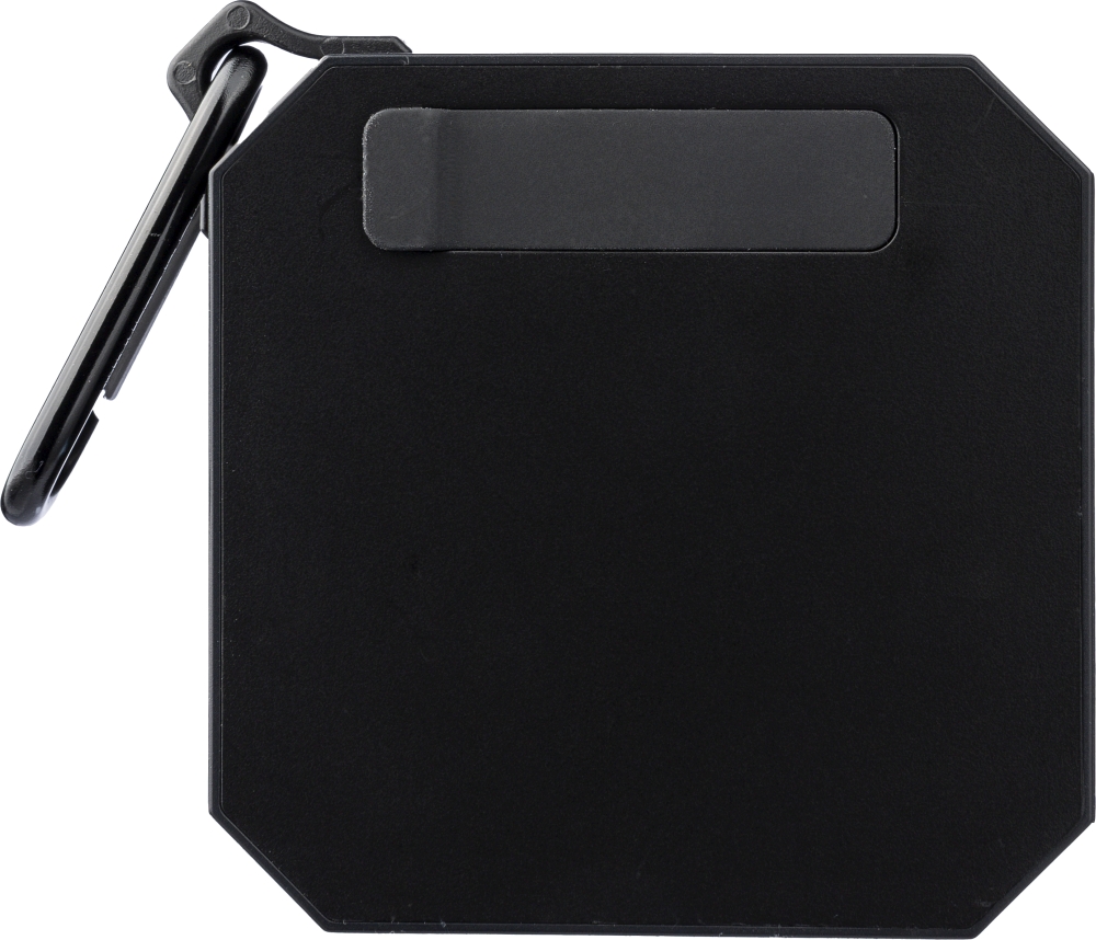 ABS reproduktor s karabinou a plastovým klipem. Stupeň krytí IPX4. 3W výstup, DC 5V vstup, 300mAh vestavěná dobíjecí baterie, s 2 hodinami přehrávání. Pracovní vzdálenost 15-20 metrů, odstup signálu od šumu 87 dB. Frekvenční rozsah: 100 Hz až 20 kHz. Obsahuje 50 cm nabíjecí kabel typu C. Technologie bezdrátového připojení: 5.2. Jednotlivě balené v hnědé kartonové krabici.Rozměry: 2,8 x 7,7 x 7,7 cm