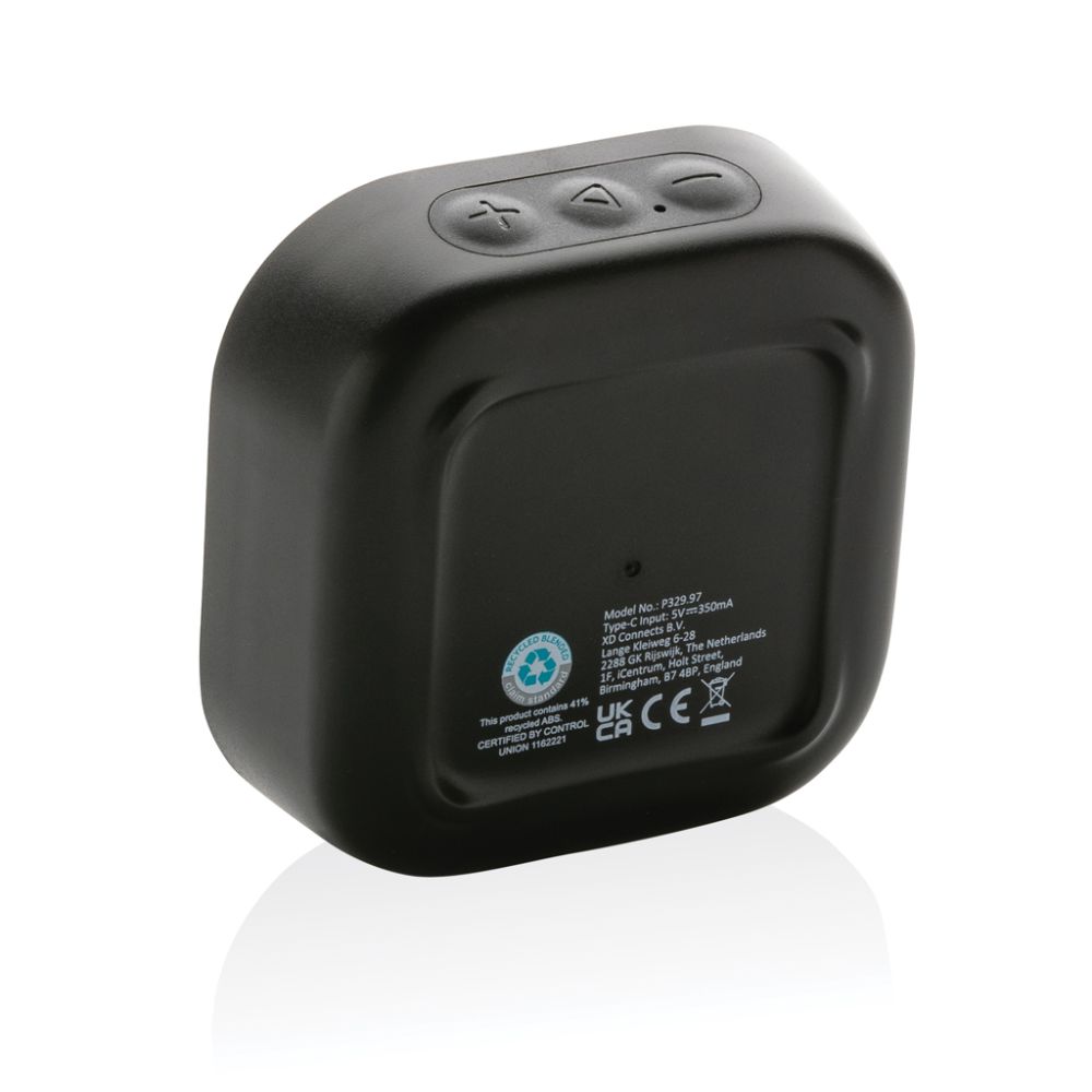 Bezdrátový reproduktor s výkonem 3 W vyrobený z RCS recyklovaného ABS. RCS (Recycled Claim Standard) je globální standard, který umožňuje ověřit použití recyklovaného materiálu v produktu napříč celým dodavatelským řetězcem. Celkový podíl recyklátu dle váhy produktu: 41 %. 400 mAh baterie umožňuje poslech po dobu až 3,5 hodin. BT 5.3 pro čisté bezdrátové připojení na vzdálenost až 10m. Mikrofon pro možnost telefonování. Včetně nabíjecího kabelu z RCS recyklovaného TPE. Baleno v FSC® dárkové krabičce. Produkt i příslušenství kompletně bez PVC. Voděodolnost IPX4. Rozměry: 9.2 x 9.2 x o 3.4 cm.