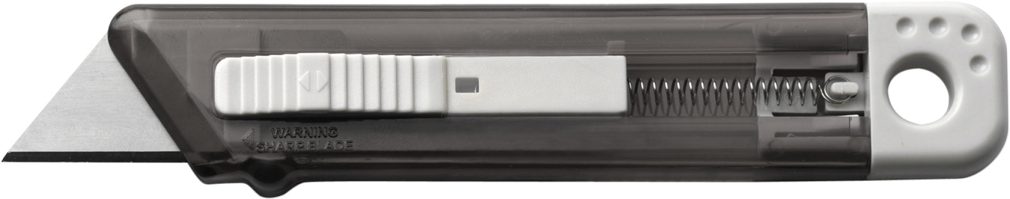 Vysouvací řezák s bezpečnostním systémem. Rozměry: 12.4 x 2.4 x 1.4 cm