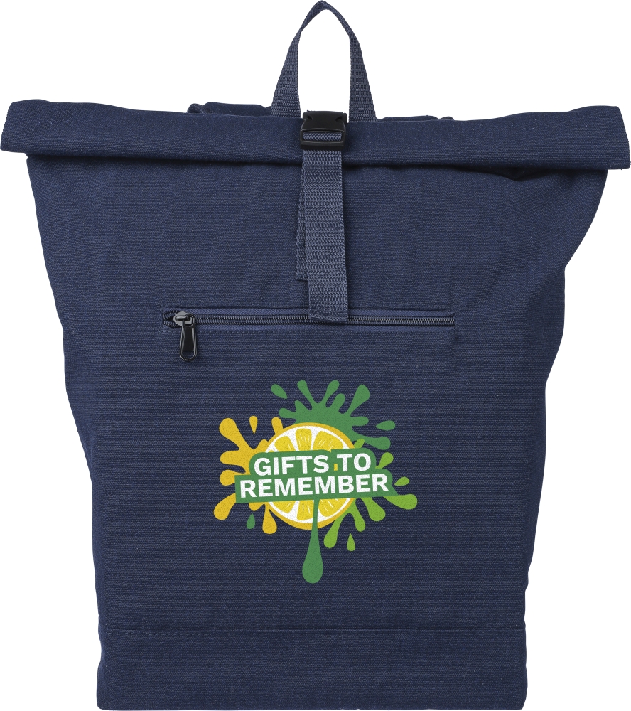 Batoh s rolovacím vrškem z recyklované polybavlny (330 g/m2) s podšívkou z polyesteru 210D a zapínáním na plastovou přezku. Má objem 15 litrů, velkou přihrádku na zip s přihrádkou na 15palcový notebook, dvě vnitřní přihrádky a jednu vnější přihrádku. Design zahrnuje poutko na nošení v horní části, polstrované nastavitelné popruhy a malou přední kapsu na zip. Nosnost: 14 kg. Rozměry: 27 x 15 x 53 cm