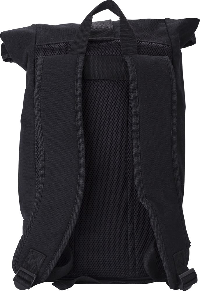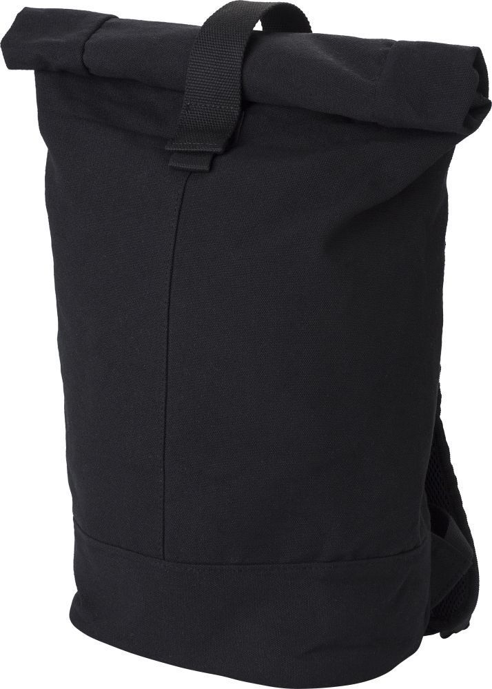Batoh s rolovacím systémem zavírání v horní části se suchým zipem. Batoh je vyroben z kombinace materiálů polyester, canvas, 210D RPET, síťovina. Dno je z RPET PU. Rozměry: 22.5 x 15 x 58 cm
