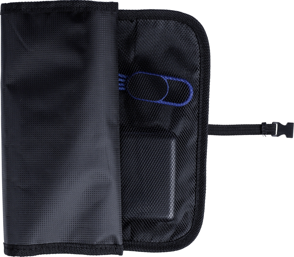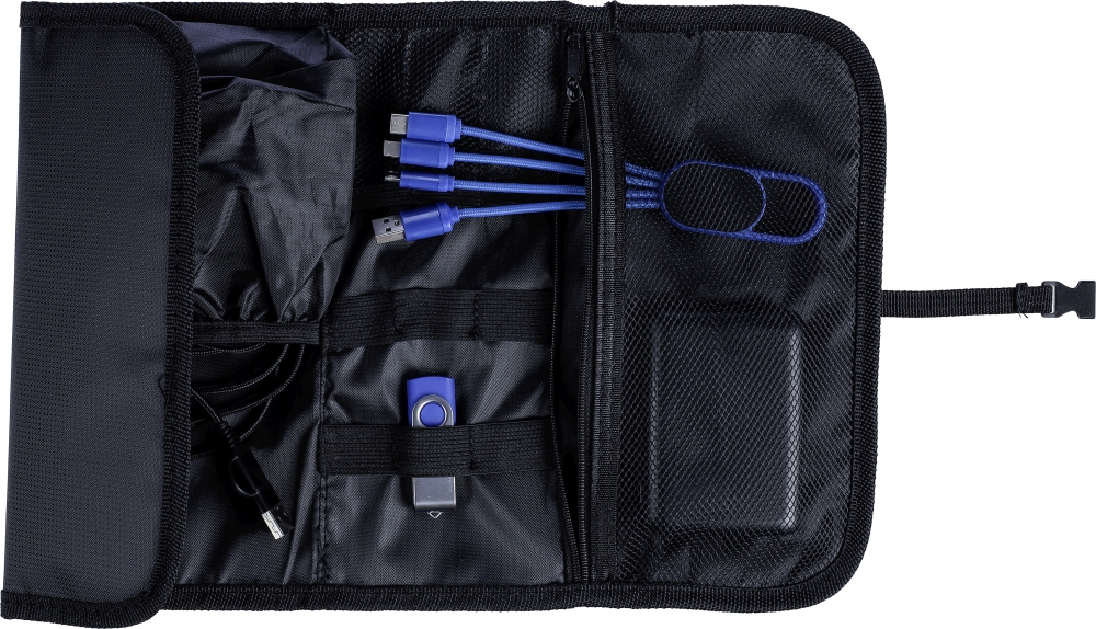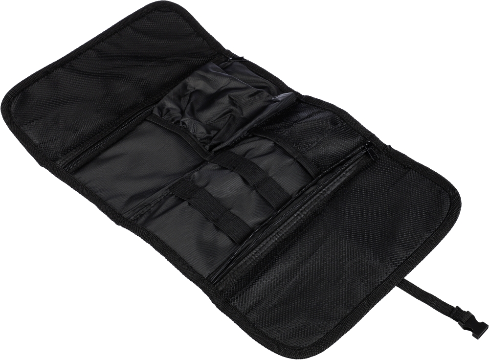 Polyesterová rolovací taška 1680D s plastovou přezkou. S několika kapsami a přihrádkami na zip uvnitř pro uložení nabíjecích kabelů nebo zařízení.Rozměry: 0,2 x 24 x 12 cm