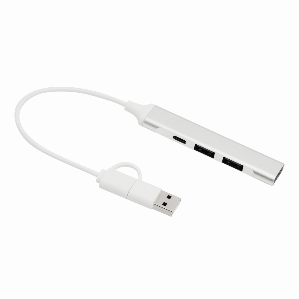 bRozbočovač USB NETWORK/b: v hliníkovém pouzdře, 2 porty USB A a 1 port USB Type-C, délka kabelu cca. 20 cm, kombinovaný vstupní konektor USB A / Type-C Rozměry: 9,5 x 1,6 x 0,7 cm