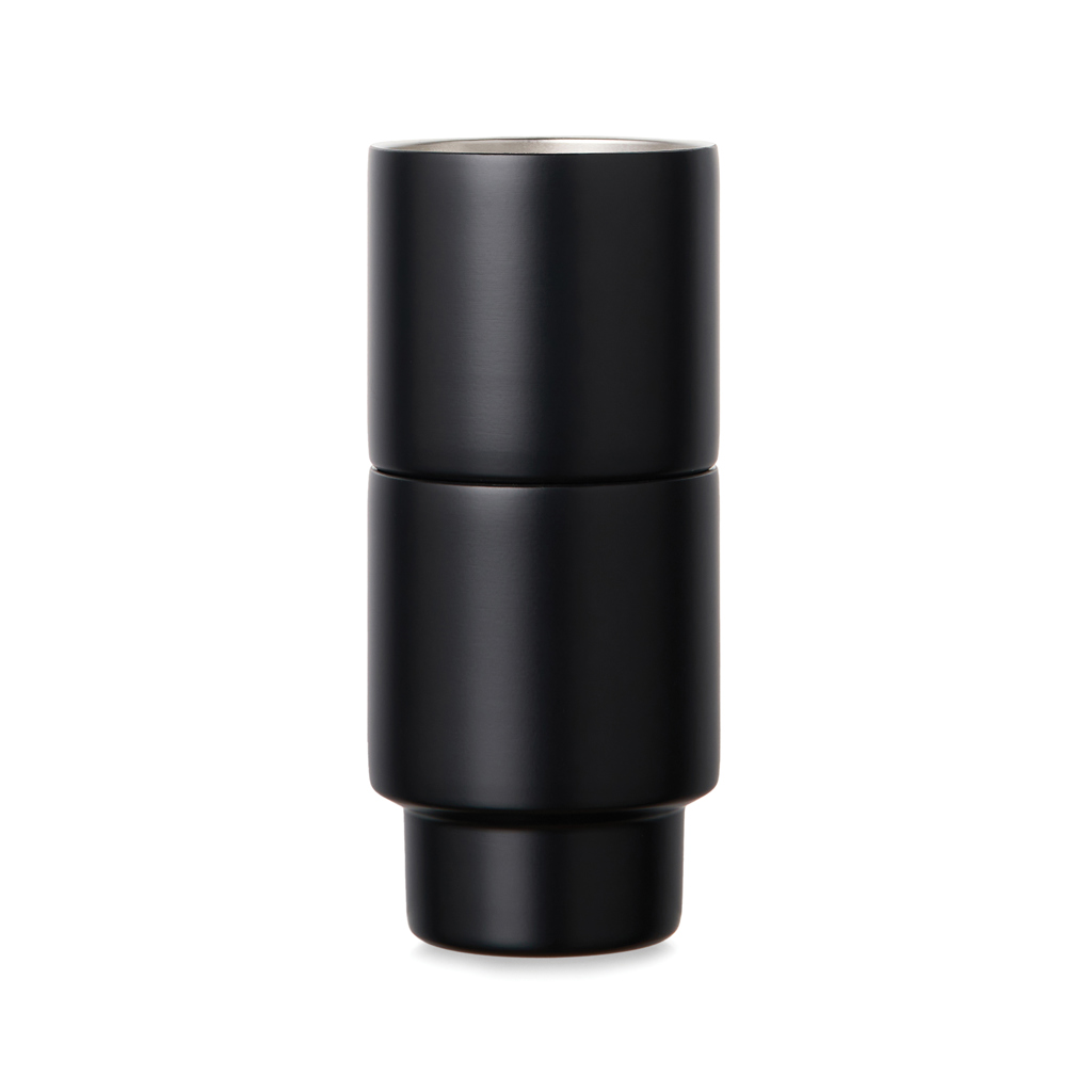 Hrnek je vyroben z recyklované nerezové ocel. V tomto hrnku se snoubí jednoduchost s moderním nádechem a ztělesňuje podstatu skandinávského designu. Díky své praktické velikosti (16 ml) a stohovatelnému tvaru je ideální pro každodenní použití a snadno se skladuje. Dvoustěnná konstrukce pomáhá udržet teplotu nápoje po delší dobu. Nelze mýt v myčce nádobí ani ohřívat v mikrovlnné troubě, pouze ruční mytí. Tento výrobek obsahuje 40 % recyklované nerezové oceli. Rozměry: 8.5 x o 6.5 cm