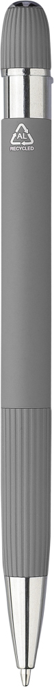 Sada recyklovaného polyuretanového zápisníku (A5) a propisky se skládá ze zápisníku se 100 linkovanými stránkami z 80g/m2 a kuličkového pera z recyklovaného hliníku s pogumovanou úpravou. Zápisník má stužkovou záložku a kryt s manšestrovým vzhledem na horní části přední a zadní strany s reliéfním recyklovaným logem na zadní straně. Propiska má pruhované detaily na úchopu a horní straně, chromovanou plastovou špičku, tlačítko, kovový klip a laserem gravírované recyklované logo. Baleno v pevné hnědé kartonové krabici s vložkou z EVA pro kuličkové pero. Modrý inkoust. Rozměry: 22,5 x 17,5 x 2,5 cm