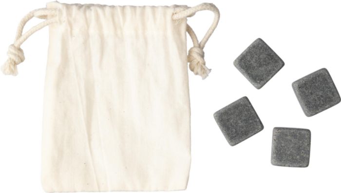 Sada tří opakovaně použitelných chladicích kostek z kamene. Před použitím stačí dát kameny vychladit do lednice. Baleno ve stahovacím pytlíku. Rozměry: 9,5 × 0,5 × 8 cm.