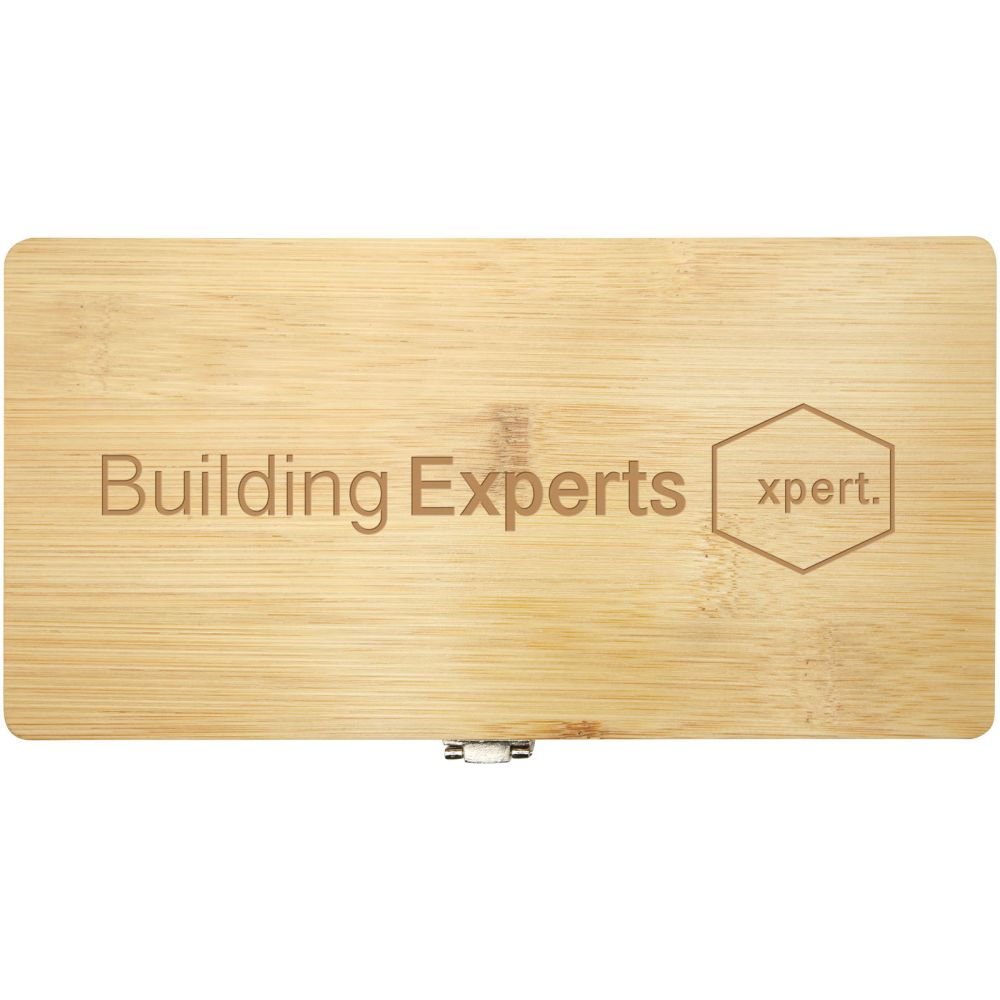 Zažijte dokonalé spojení udržitelnosti a funkčnosti se sadou nářadí. Tato pečlivě navržená sada nástrojů je nejen vizuálně přitažlivá, ale také šetrná k životnímu prostředí, aniž by byla ohrožena kvalita nebo použitelnost. Přirozená pevnost a odolnost bambusu zajistí, že vaše nástroje budou chráněny po mnoho let. Uvnitř kufříku najdete sadu 19 základních nástrojů vyrobených z uhlíkové oceli a recyklovaného plastu: 1 dlouhá kloubová rukojeť, 4 vysoce kvalitní objímky pro různé aplikace, 1 prodlužovací tyč pro těžko přístupná místa, 10 precizně vyrobených šroubovacích bitů pro jakýkoli úkol a 3 šestihranné klíče pro montáž nábytku. Ať už jste kutilové nebo profesionální řemeslníci, tyto nástroje jsou navrženy tak, aby fungovaly spolehlivě a vydržely náročné používání. Vzhledem k tomu, že bambus je přírodní produkt, mohou se mezi jednotlivými výrobky objevit mírné rozdíly v barvě a velikosti, které mohou mít vliv na konečný výsledek potisku. Zabaleno v dárkové krabičce STAC z udržitelných zdrojů. Rozměry: 22 x 2,7 x 11 cm.