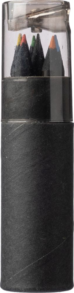 Sada 7 pastelek v kartové tubě s plastovým vrškem se zabudovaným ořezávátkem. Rozměry: O 2,5 × 10,5 cm.