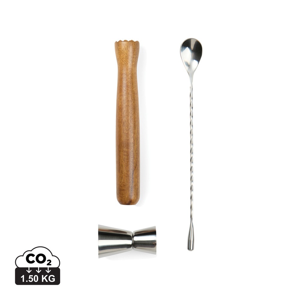 Ponořte se do živého světa mokktailů se sadou elegantně zabalenou v dárkové krabici připomínající klasickou knihu. Sada obsahuje dřevěný muddler z akácie s certifikací FSC®, džbánek z nerezové oceli a barovou lžičku s vírem, které jsou navrženy tak, aby vám pomohly vytvořit dokonalý nápoj. Jedinečné balení nejen chrání nástroje, také pomůže vytvořit si vlastní zábavné a lahodné moktejly, což z něj činí ideální dárek pro každého nadšence mixologie. Dárková krabička je vyrobena z FSC® kraftového papíru.