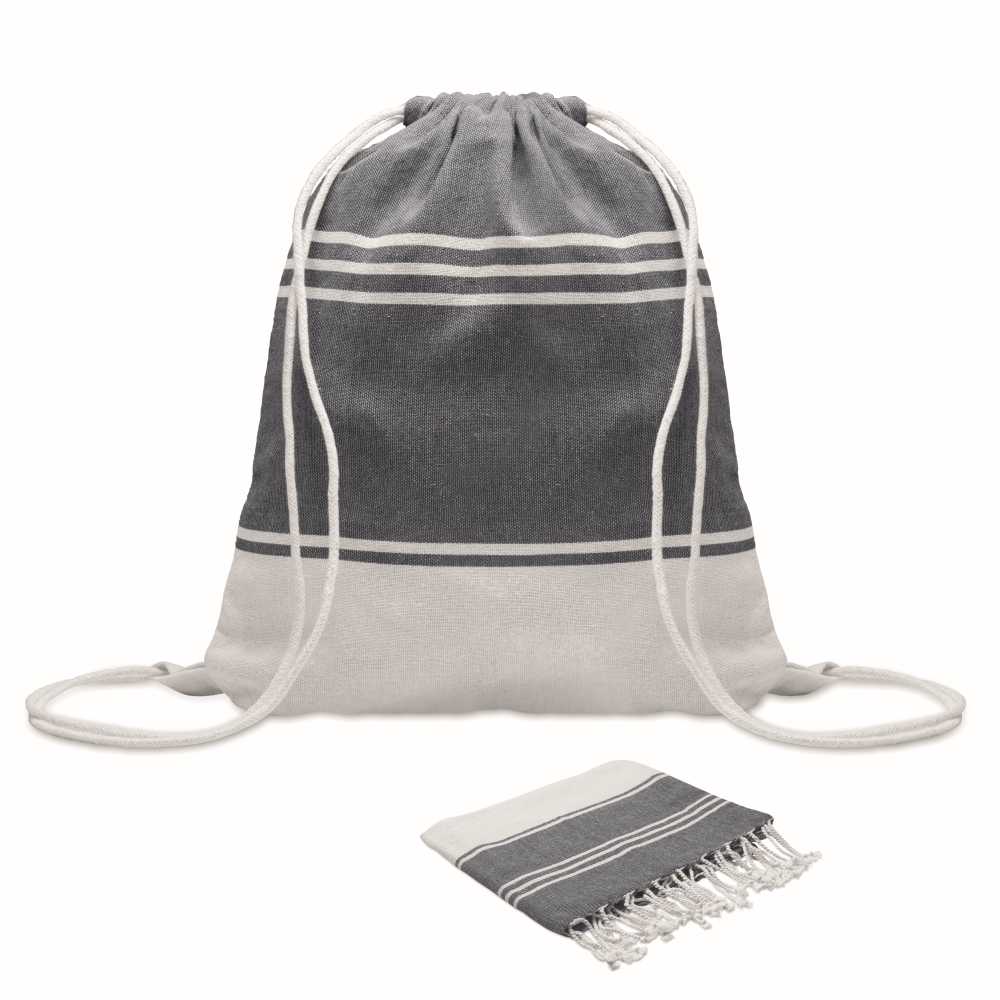 Sada plážové osušky a stahovacího batohu hammam. 70 % recyklované bavlny a 30 % recyklovaného polyesteru. 180 g. Rozměr 90x160 cm. Rozměry: 90 x 160 cm