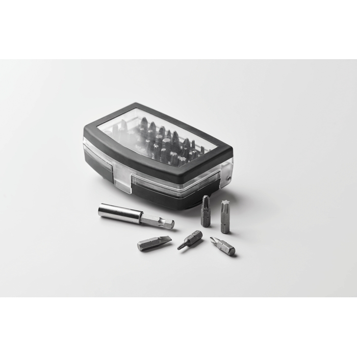 32dílná sada šroubovacích bitů s otočným držákem.Rozměry: 10,7 x 7,2 x 4,3cm
