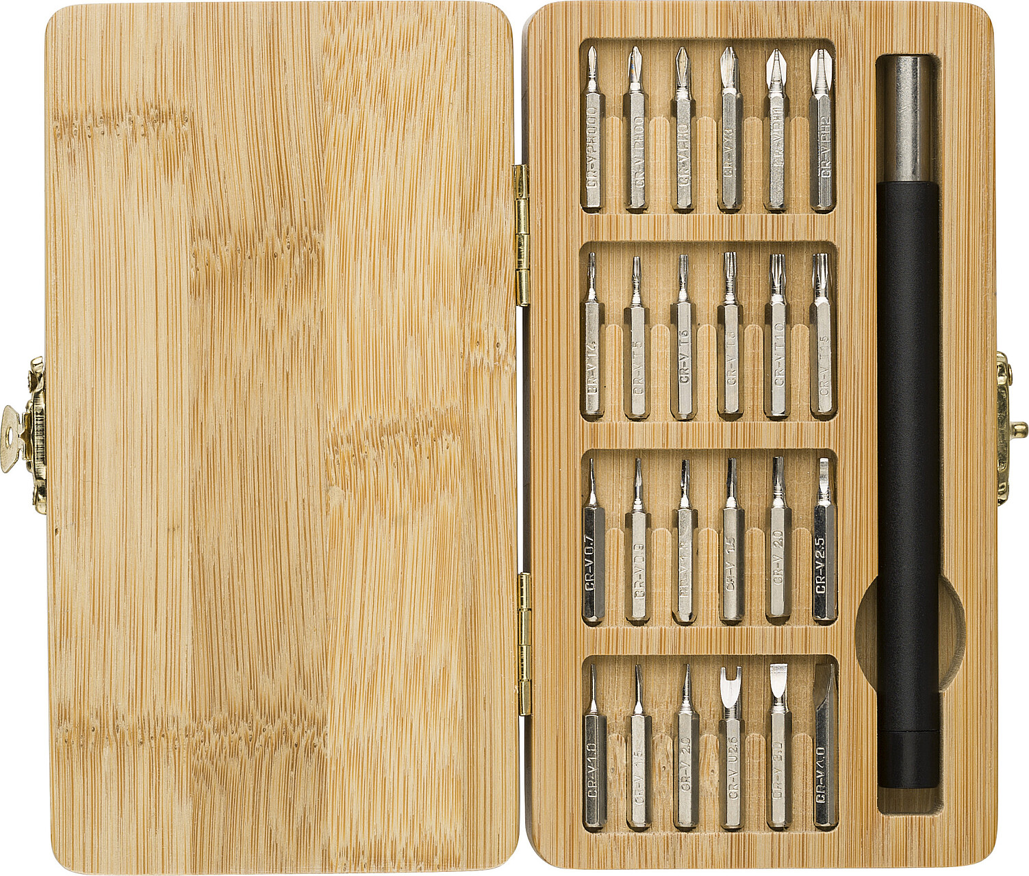 FISUNA Sada šroubováku s 24 bity v bambusovém pouzdře