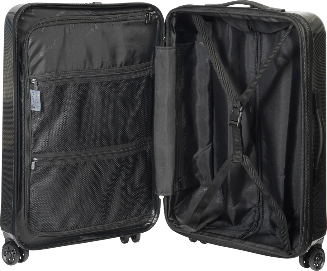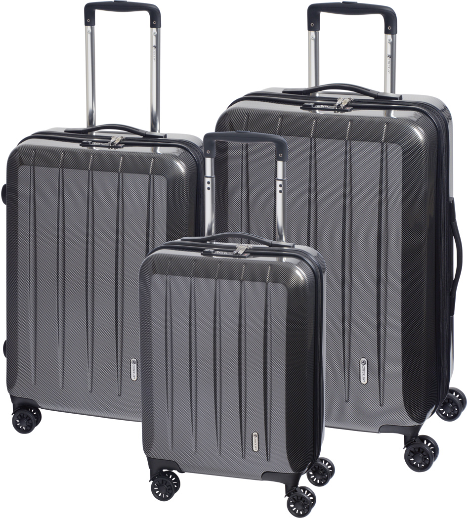 Sada tří skořepinových kufrů. Každý kufr má možnost plnění do obou polovin, kde je křížové upínání a vnitřní dělící přepážka se síťkovou kapsou. Výsuvné kovové madlo a 4 hladce jezdící otočná kolečka zajistí pohodlnou manipulaci. Součástí je TSA číselný zámek. Malý kufr: 55x37x20cm, 2,3kg, 29 l. Střední kufr: 67x45x27cm, 3,6kg, 72 l. Velký kufr: 75x52x31cm, 4,3kg, 110l. Kartonové množství v ks: 1