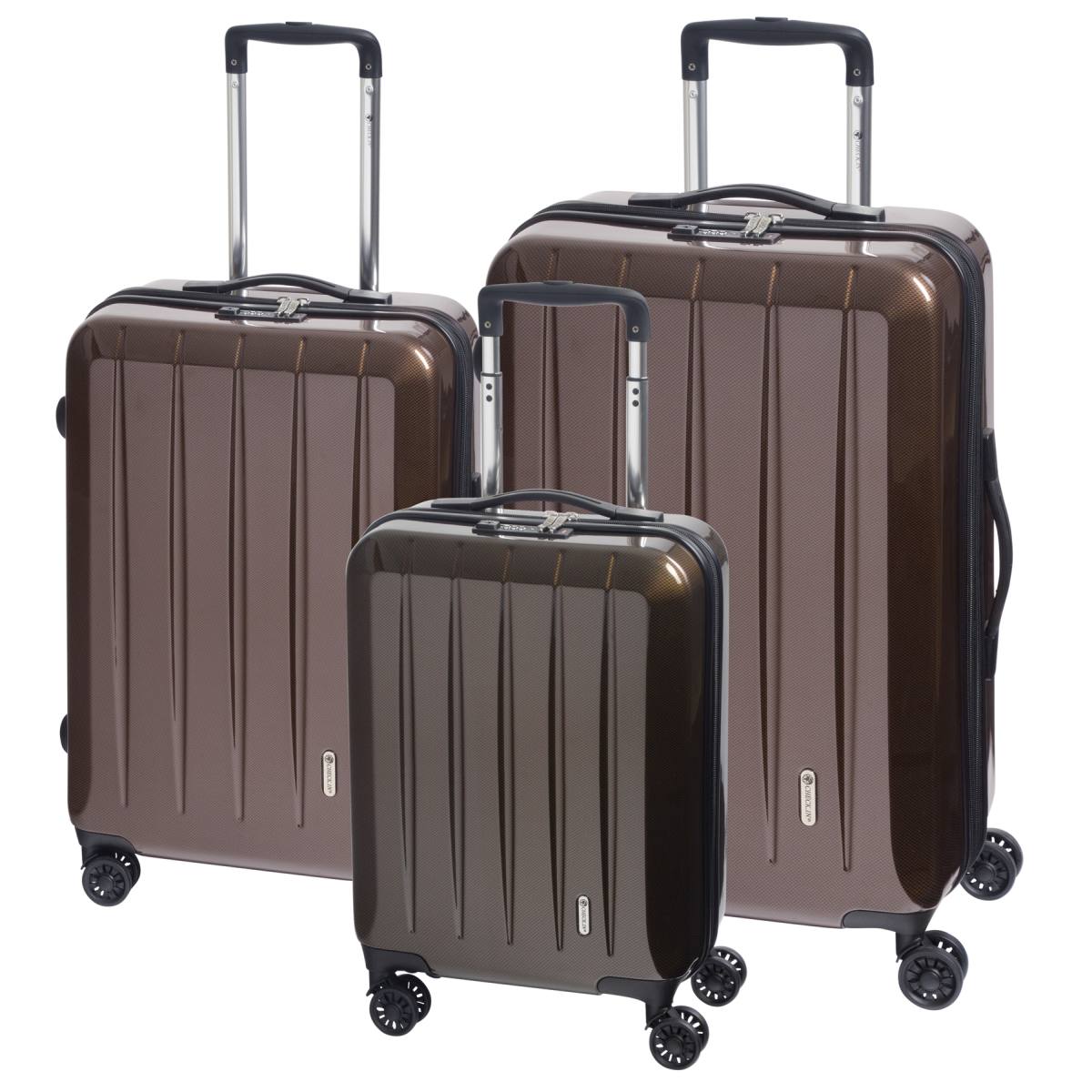 Sada tří skořepinových kufrů. Každý kufr má možnost plnění do obou polovin, kde je křížové upínání a vnitřní dělící přepážka se síťkovou kapsou. Výsuvné kovové madlo a 4 hladce jezdící otočná kolečka zajistí pohodlnou manipulaci. Součástí je TSA číselný zámek. Malý kufr: 55x37x20cm, 2,3kg, 29 l. Střední kufr: 67x45x27cm, 3,6kg, 72 l. Velký kufr: 75x52x31cm, 4,3kg, 110l. Kartonové množství v ks: 1