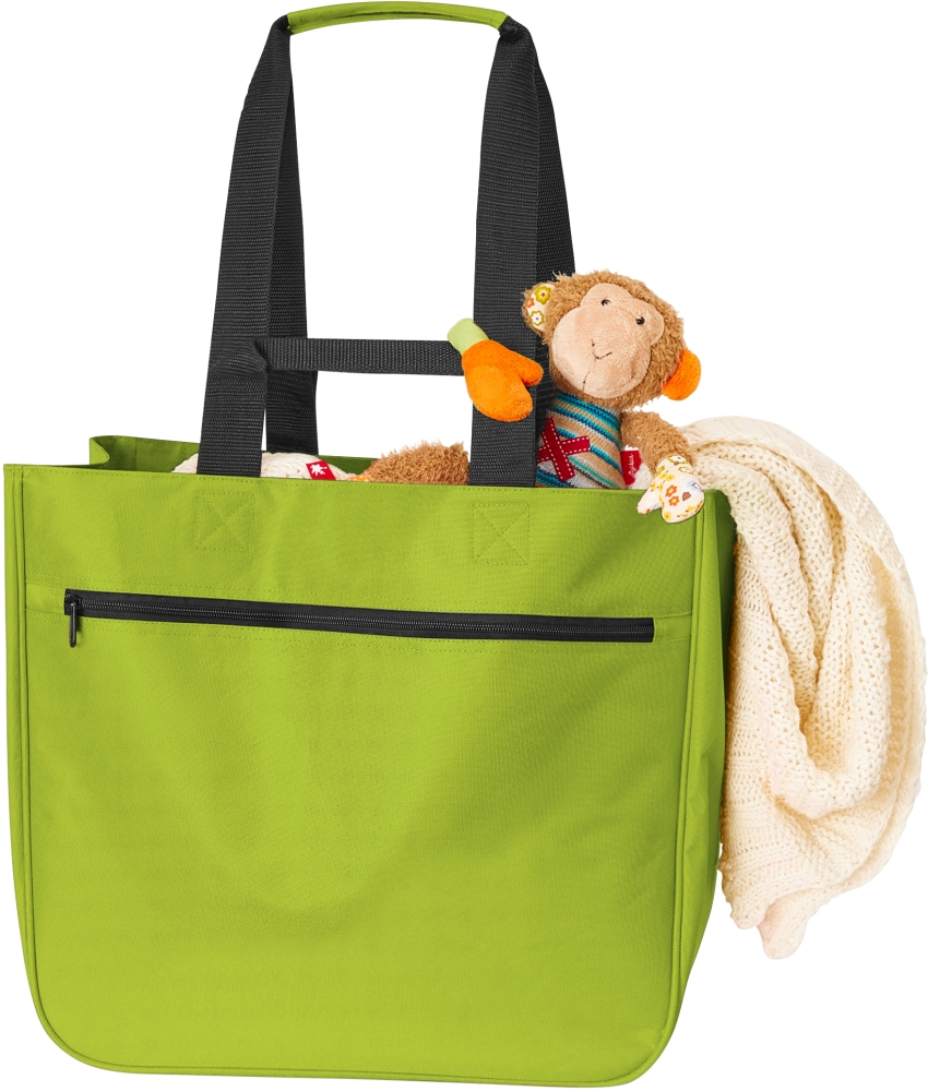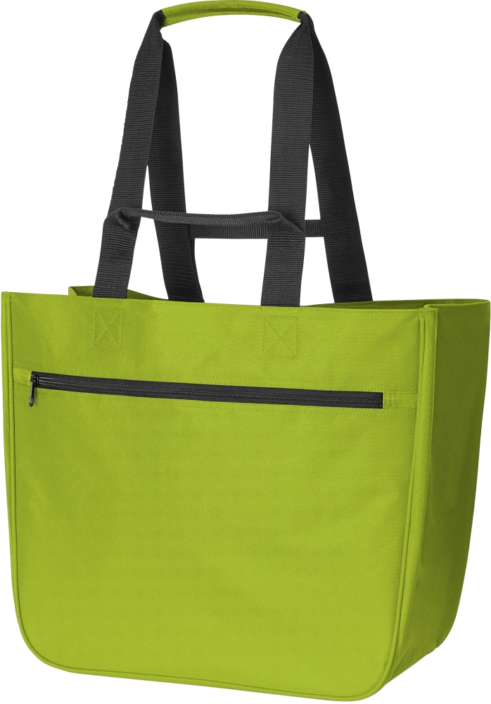 Prostorná nákupní taška z recyklovaného polyesteru pro mnohostranné použití. Má velkou hlavní kapsu, přední kapsu na zip a vypolstrovaný úchop pro pohodlnější přenášení. Rozměry: 40 × 37 × 20 cm.