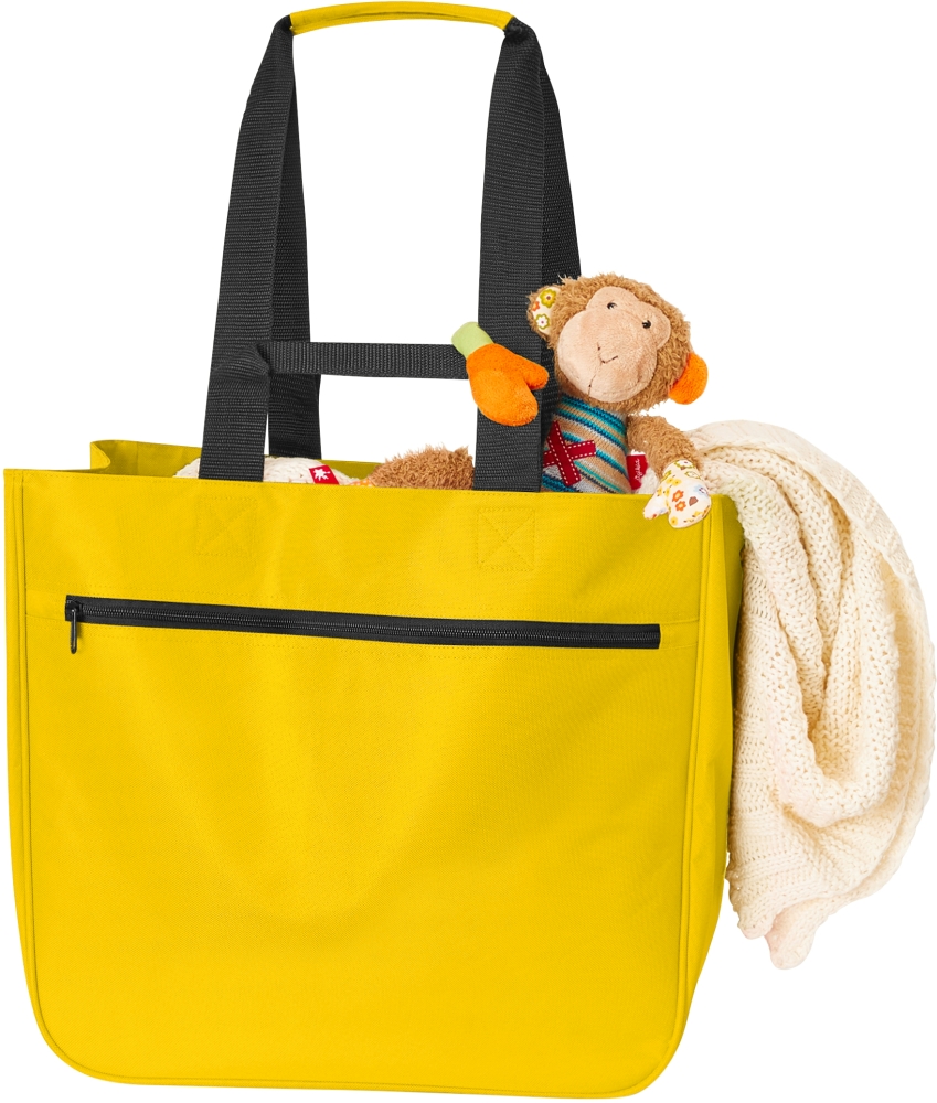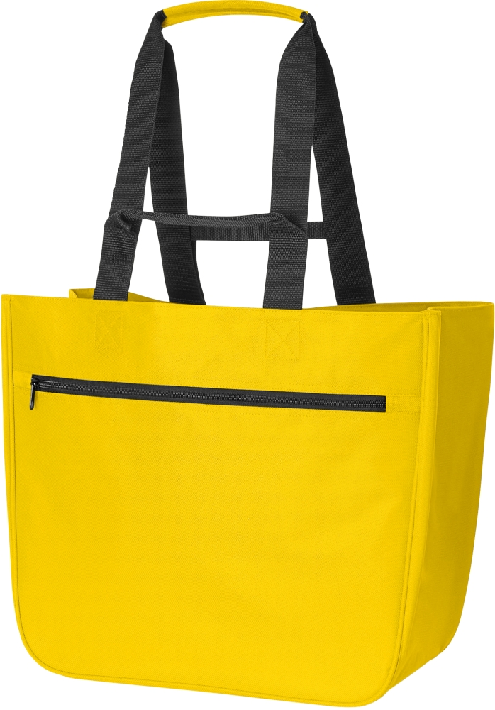 Prostorná nákupní taška z recyklovaného polyesteru pro mnohostranné použití. Má velkou hlavní kapsu, přední kapsu na zip a vypolstrovaný úchop pro pohodlnější přenášení. Rozměry: 40 × 37 × 20 cm.