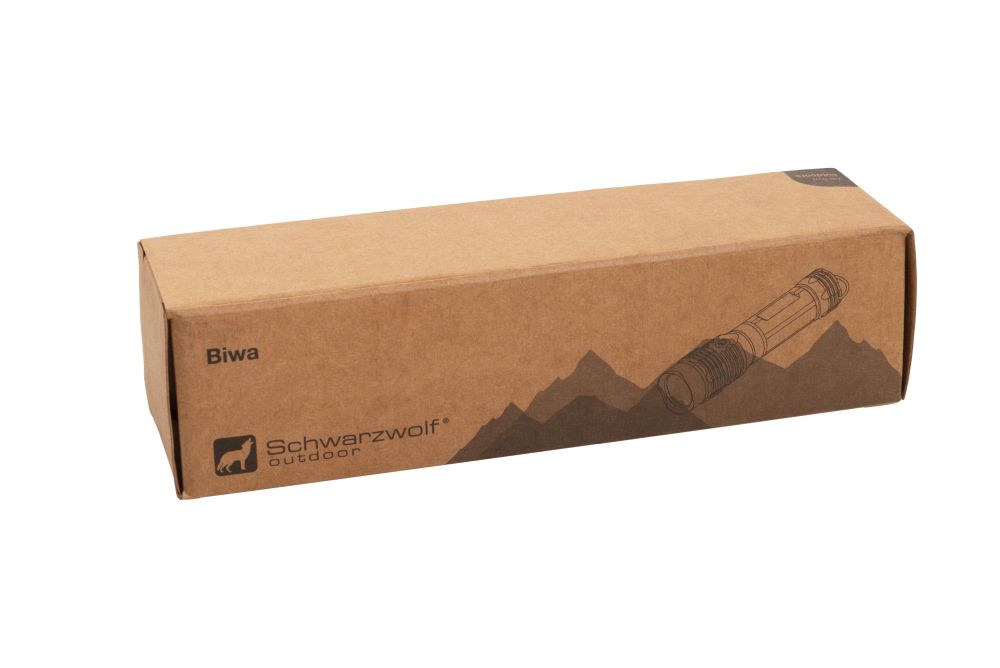 Značková kovová outdoorová svítilna značky Schwarzwolf. Obsahuje Cree XPE diodu a výsuvnou COB diodu, která umožňuje velmi intenzivní osvětlení. Na konci svítilny je magnet a háček na její případné zavěšení. Baleno v dárkové krabičce. Svítivost: Cree XPE dioda 130 lumenů, COB dioda 180 lumenů. Rozměry: 16,7 × 4 cm, délka při vysunutí 22,8 cm. Poznámka: dodáváme včetně baterie 4 × AAA. Uhlíková stopa: gCO2 e7762.