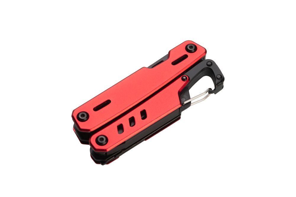 Multifunkční nářadí značky Schwarzwolf. Obsahuje 11 nástrojů – nůž, otvírák na pivo, otvírák na plechovky, kleště, štípačky, pilku, šroubovák, křížový šroubovák, pilník, odizolovací nůž, vytahovač hřebíků. Nářadí má karabinu a je baleno v neoprenovém pouzdře a dárkové krabičce. Rozměry: v zavřeném stavu 10,5 × 4 × 2 cm. Uhlíková stopa: gCO2 e1574.