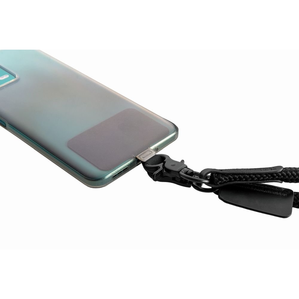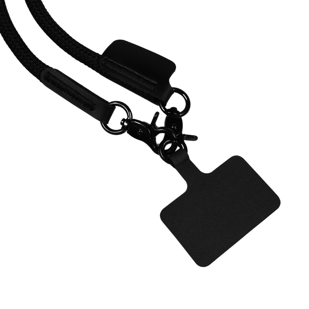 Praktická černá crossbody šňůrka značky Schwarzwolf s držákem na telefon, díky níž budete mít telefon vždy po ruce a zároveň volné ruce.