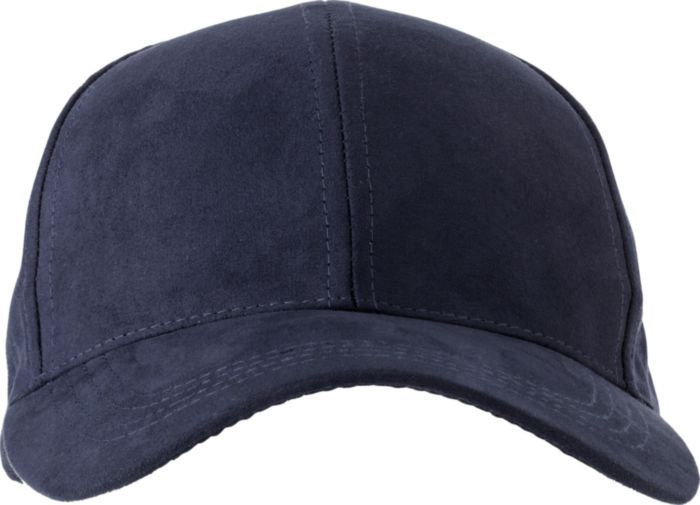 Šestipanelová semišová kšiltovka s nastavitelným zapínáním na kovovou přezku. Rozměry: o 58cm.