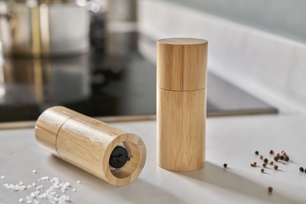 Bambusový mlýnek na koření s keramickým mlýnkem. Jednotlivě balené v papírové krabičce kraft. Materiál: bambus Rozměry: 5 x 12,8 cm
