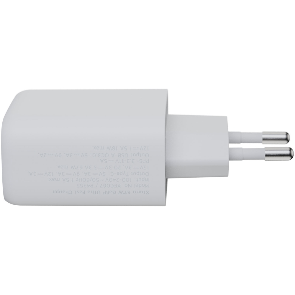 Síťová nabíječka 67 W je navržena tak, aby byla kompaktnější a výkonnější než kdykoli předtím. Díky kompaktnímu designu a provozu se dvěma porty je tato síťová nabíječka ideální na vaše cesty, do kanceláře nebo domácnosti. Nabíječka je vyrobena z 97 % z recyklovaného plastu. Výstup: 1 napájecí zdroj USB-C 67 W a 1 rychlonabíječka USB-A 18 W 3.0. Rozměry: 8,3 x 4,6 x 2,8 cm