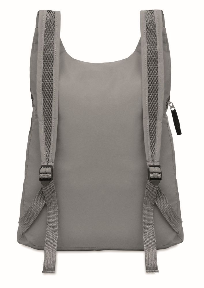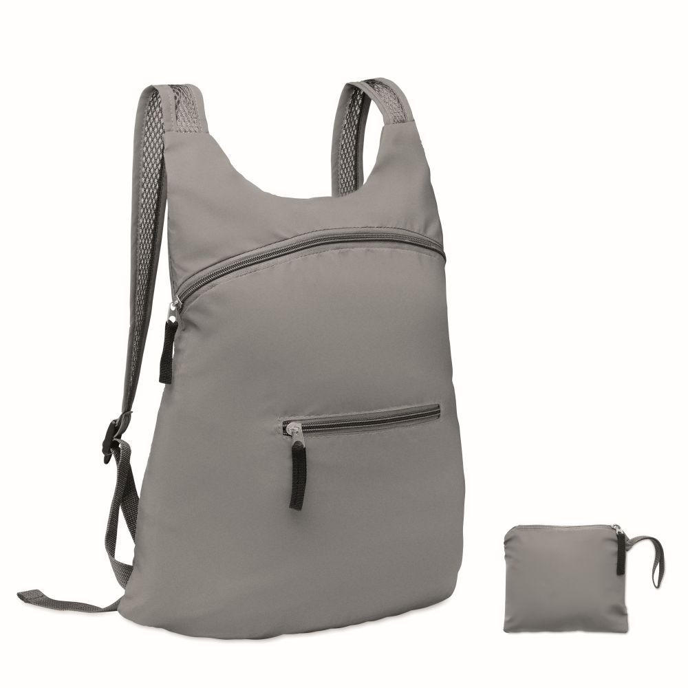 Skládací sportovní batoh z vysoce reflexního polyesteru 190T s přední kapsou na zip. Nastavitelné a odnímatelné ramenní popruhy. Rozměry: 36x11x39.5cm