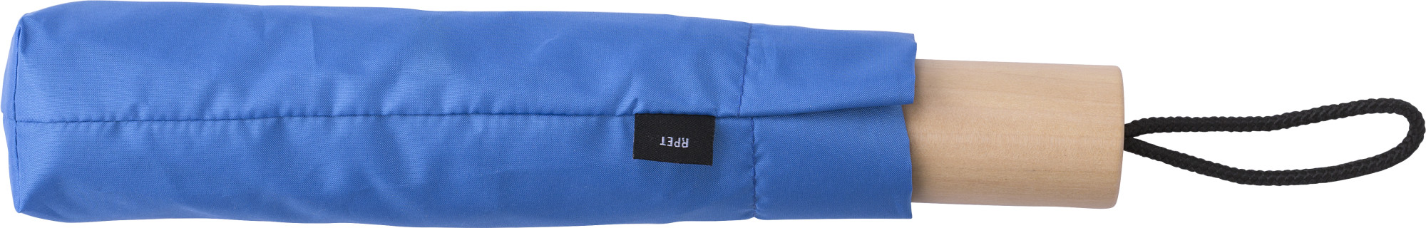 Skládací deštník vyrobený z RPET s osmi panely a dřevěnou rukojetí. Deštník má obal v odpovídající barvě. Rozměry: O 97 cm