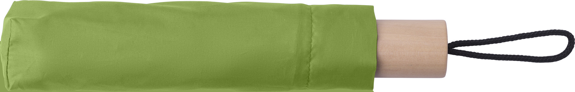 Skládací deštník vyrobený z RPET s osmi panely a dřevěnou rukojetí. Deštník má obal v odpovídající barvě. Rozměry: O 97 cm