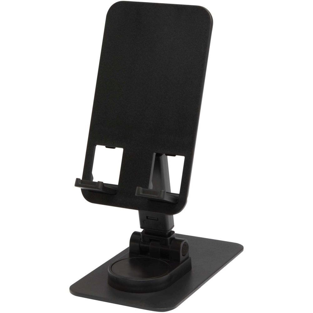 Skládací držák na telefon z recyklovaného plastu s kovovým stolním stojanem, černá