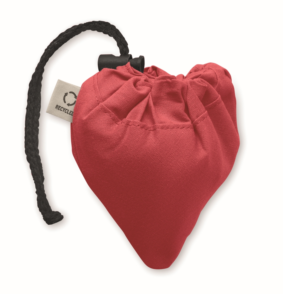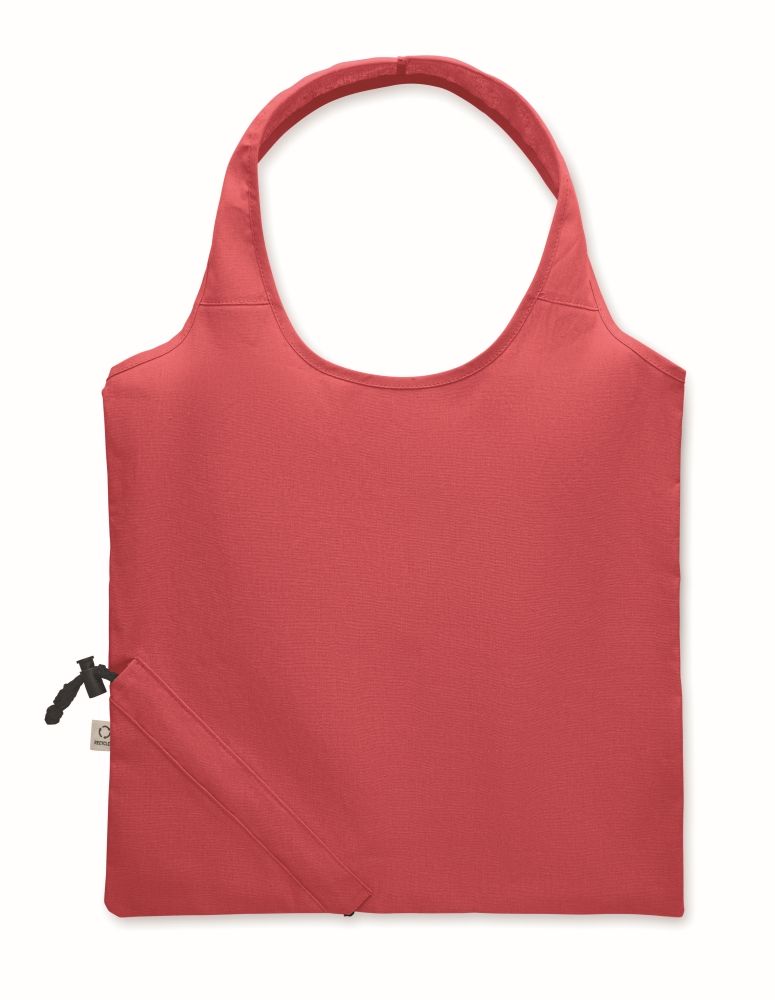 Skládací nákupní taška z recyklované bavlny (70 % recyklované bavlny a 30 % RPET). 140 gr/m2. Tento produkt se po tisku může srazit. Rozměry: 38 x 40 cm