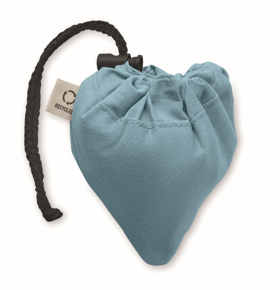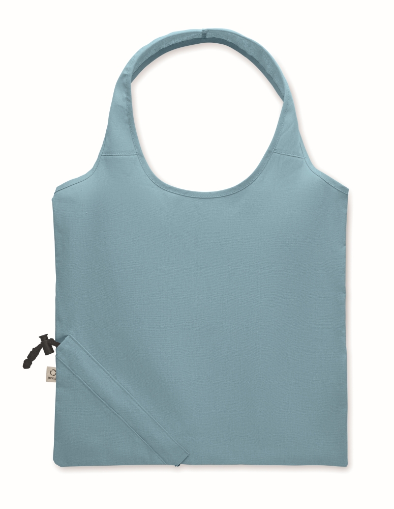 Skládací nákupní taška z recyklované bavlny (70 % recyklované bavlny a 30 % RPET). 140 gr/m2. Tento produkt se po tisku může srazit. Rozměry: 38 x 40 cm