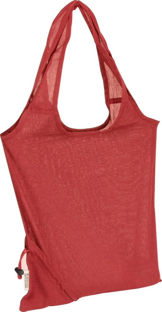 Nákupní taška vyrobená z recyklované bavlny a polyesteru s gramáží 118 g/m2. Tašku lze snadno složit a ušetřit tak místo. Rozměry: 37 x 0,3 x 37 cm