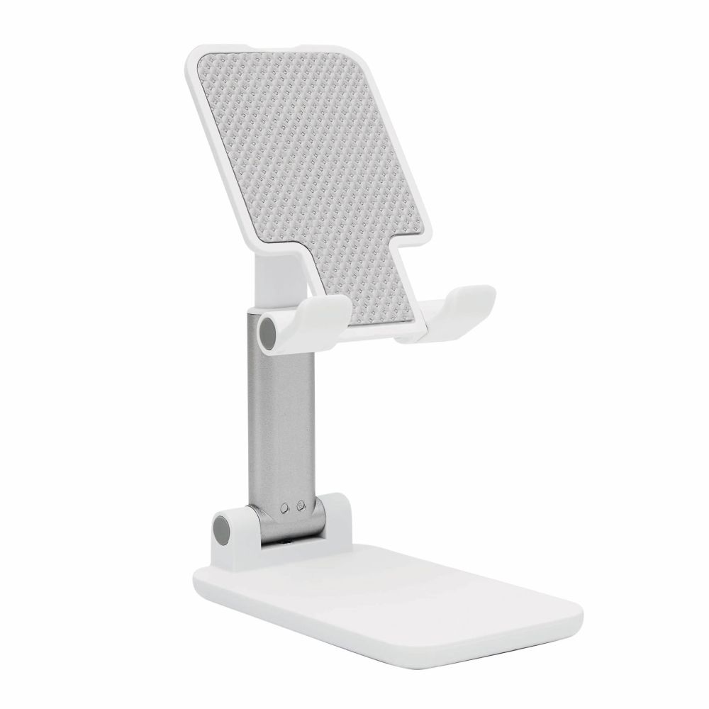 Skládací stojánek na mobil s protiskluzovým povrchem. Výška a úhel stojánku lze nastavit. Stojánek má silikonové měkčení pro bezpečné držení telefonu. Rozměry: 11 x 6,6 x 2,6-16,5 cm