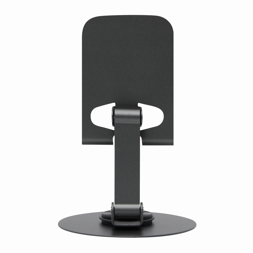 Skládací ocelový držák telefonu, otočný o 360°, protiskluzová základna, nastavitelný úhel. Rozměry: o 9 x 14 cm
