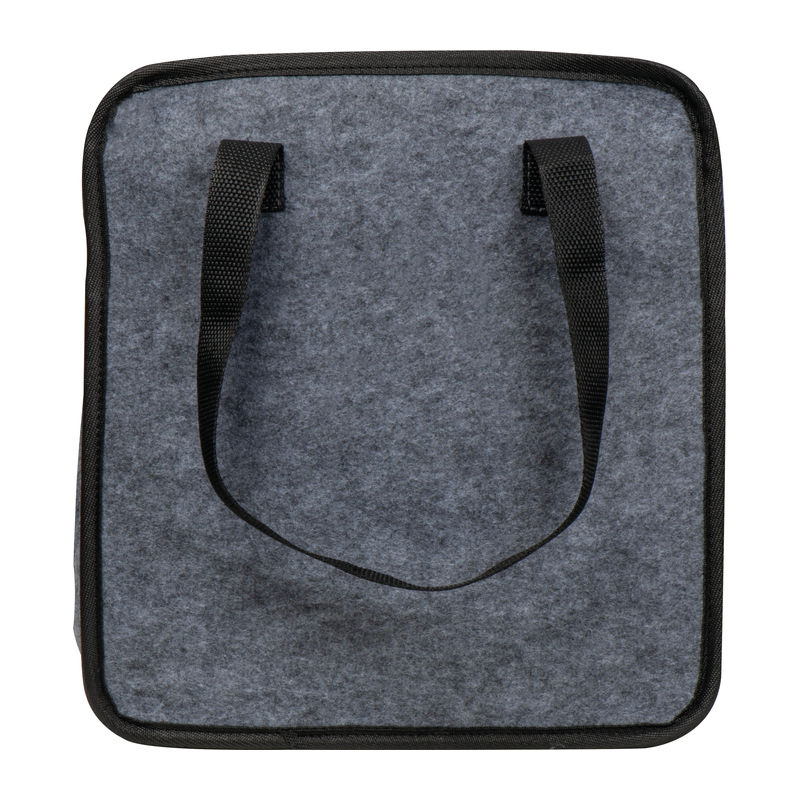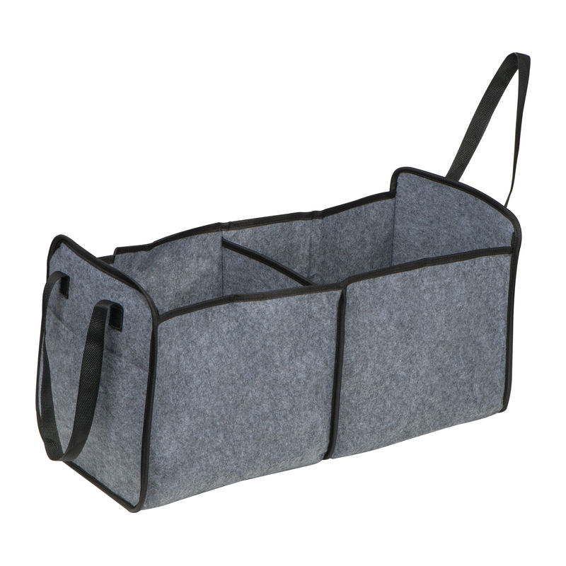 Skládací organizér do auta z RPET plsti se dvěma uchy. Rozměry: 59 x 28,7 x 31 cm