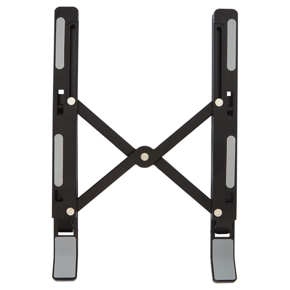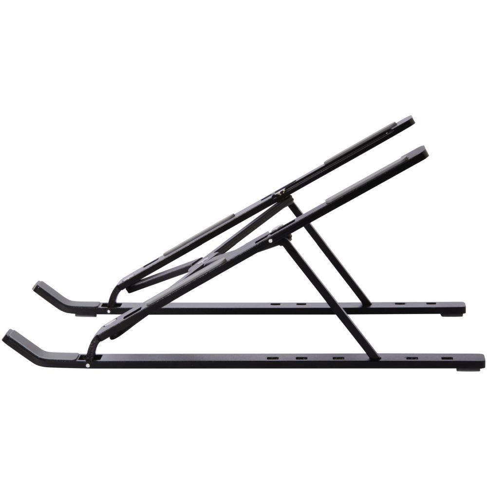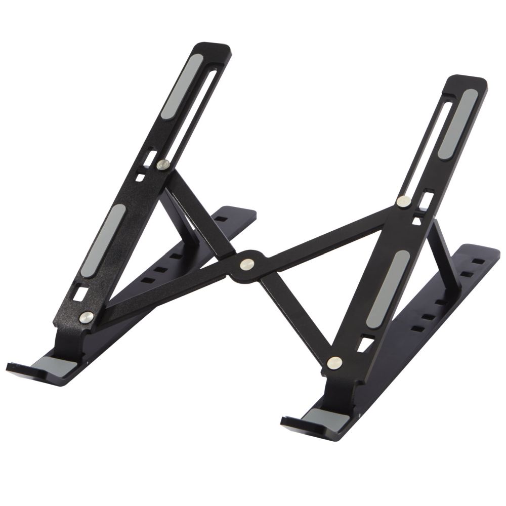 Univerzální, kompaktní a skládací stojan na notebook vyrobený ze slitiny hliníku. Stojan lze nastavit do 7 různých úhlů pro optimální ergonomické držení těla. Skládání a rozkládání stojanu je velmi snadné a lze to provést během několika sekund. Ve spodní části jsou gumové pásky, které zabraňují jeho pohybu. Součástí balení je pouzdro pro snadné přenášení. Dodáváno v prémiové krabičce z kraftového papíru s barevnou samolepkou. Hliník.