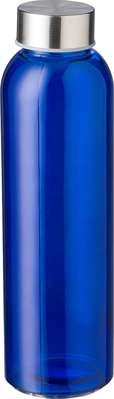 Skleněná láhev na pití 500ml s nerezovým víčkem, modrá