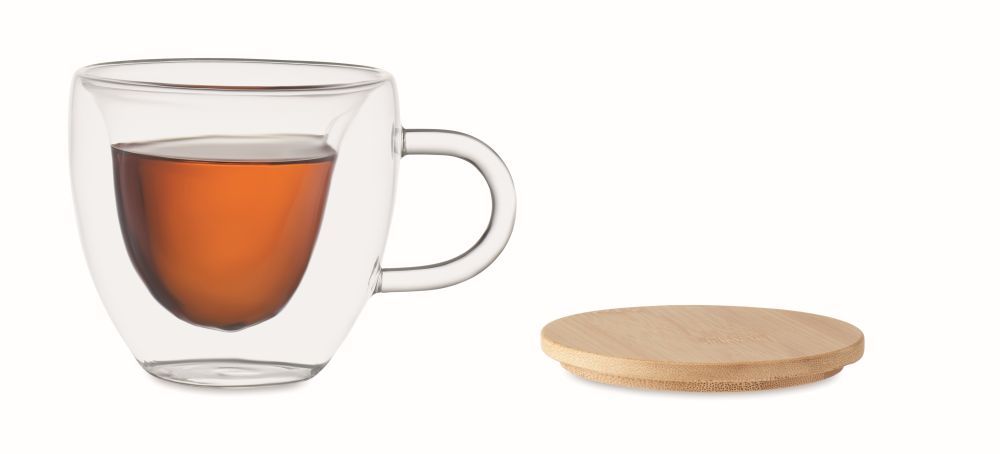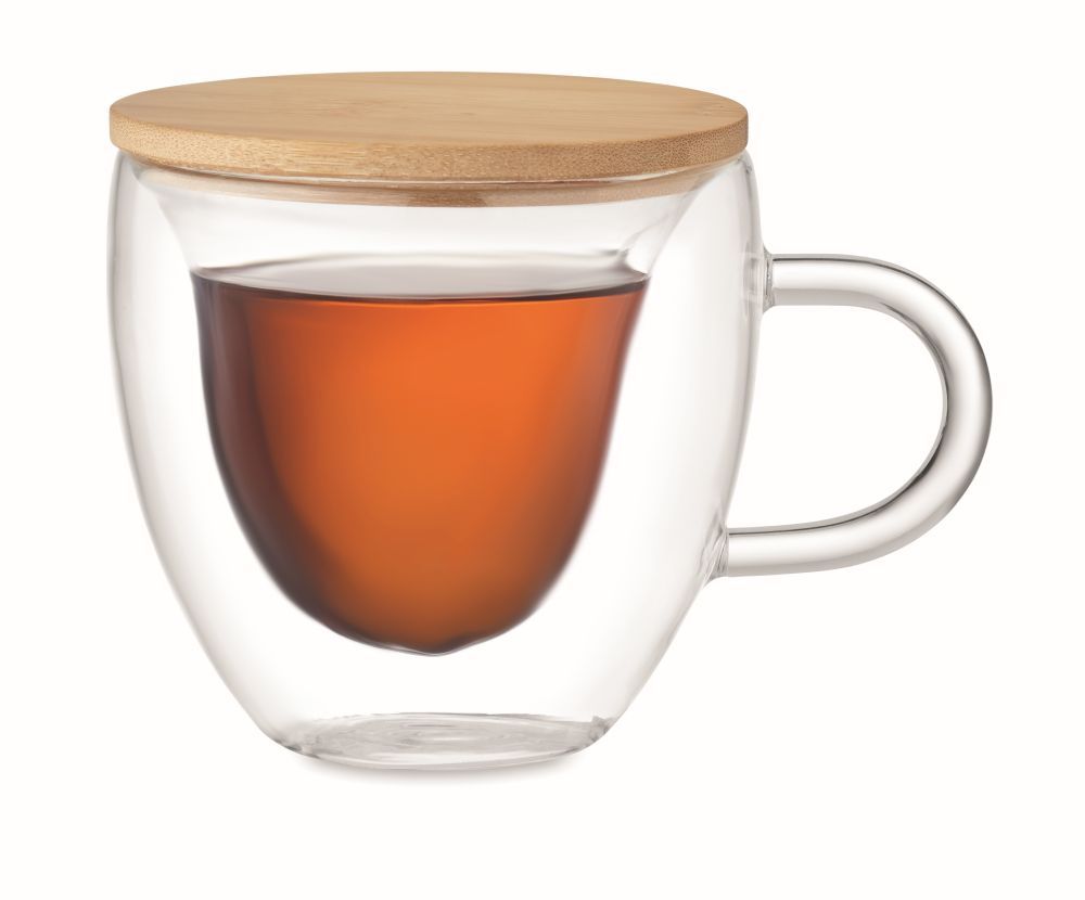Skleněný hrnek, dvoustěnný s bambusovým víčkem, 180ml