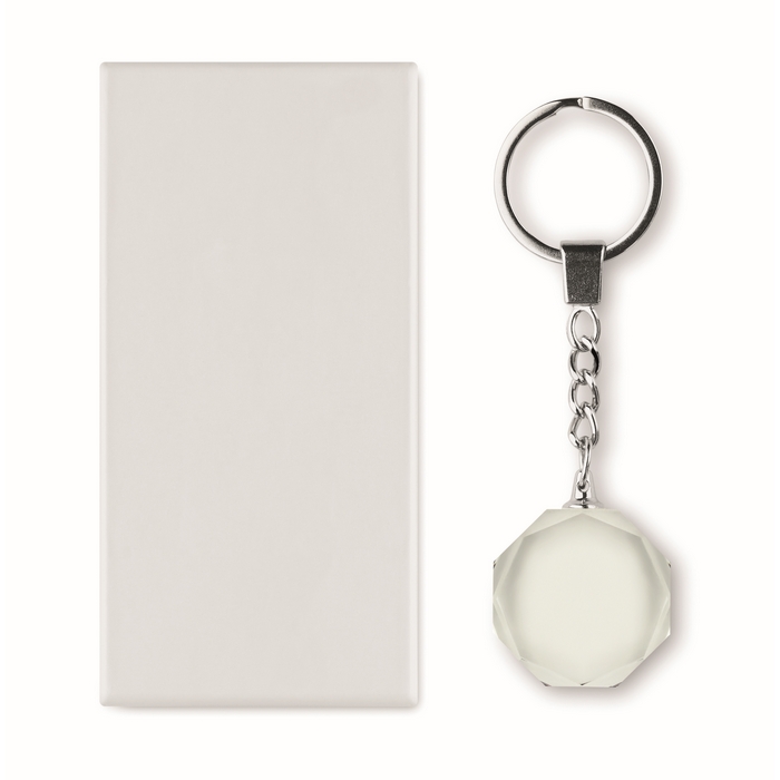 Skleněný kulatý přívěsek na klíče. Dodáváno v dárkové krabičce.Rozměry: 3 x 3 x 10,3cm