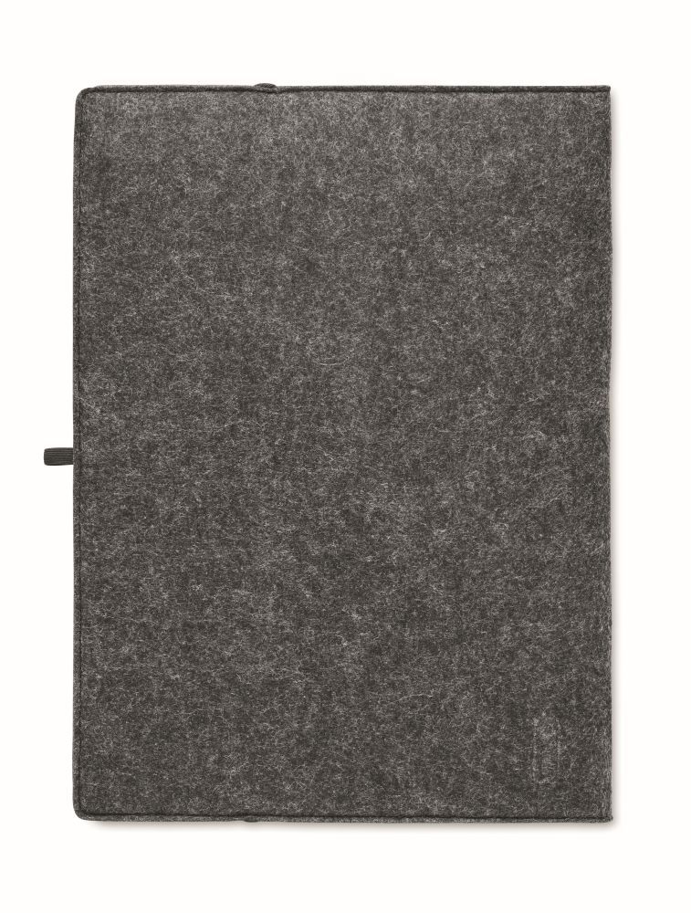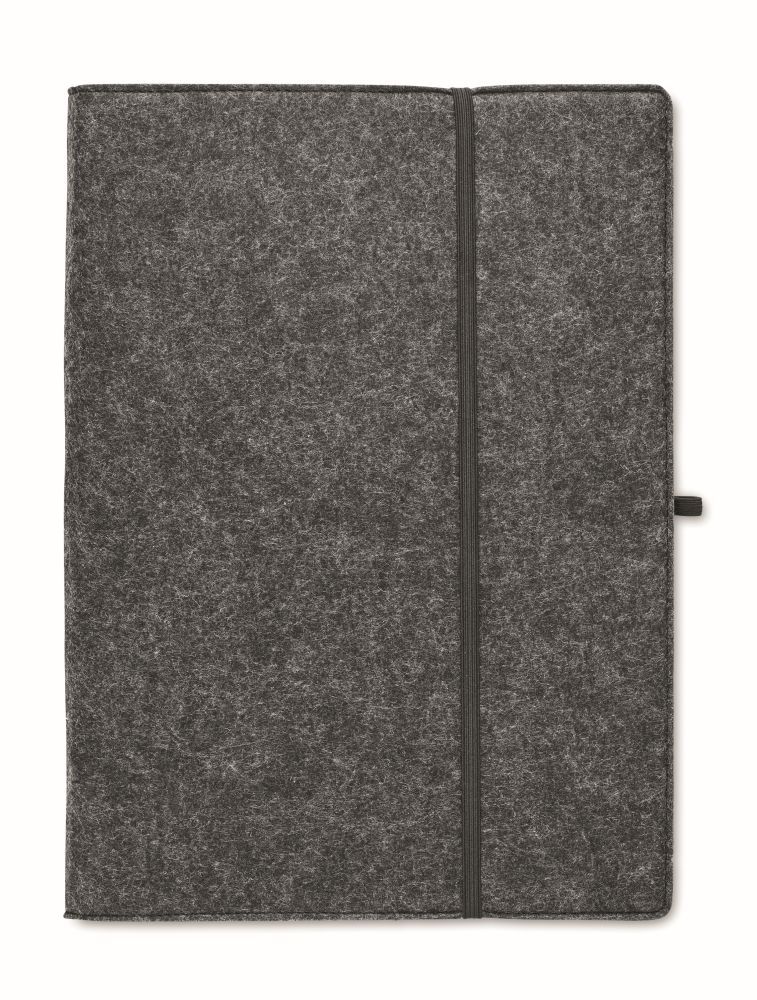 Konferenční složka A4 z plsti RPET. Poznámkový blok má 100 linkovaných listů a gumičku na pero. Rozměry: 22.5x2x30cm