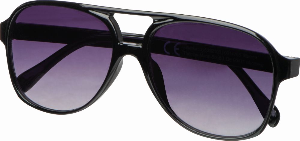 Sluneční brýle s barevnými tónovanými sklíčky a s černým rámem z RPET. Filtr kategorie 3 a UV400. Rozměry: 14,5 x 15 x 5,5 cm